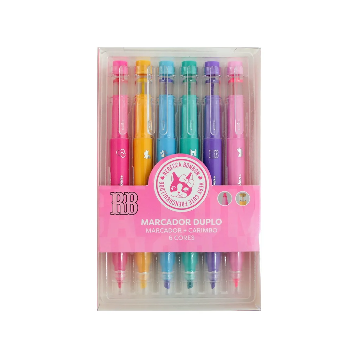 🎀✏️ Marca-Texto Duplo + Carimbo 6 Cores – Rebecca Bonbon ✏️🎀