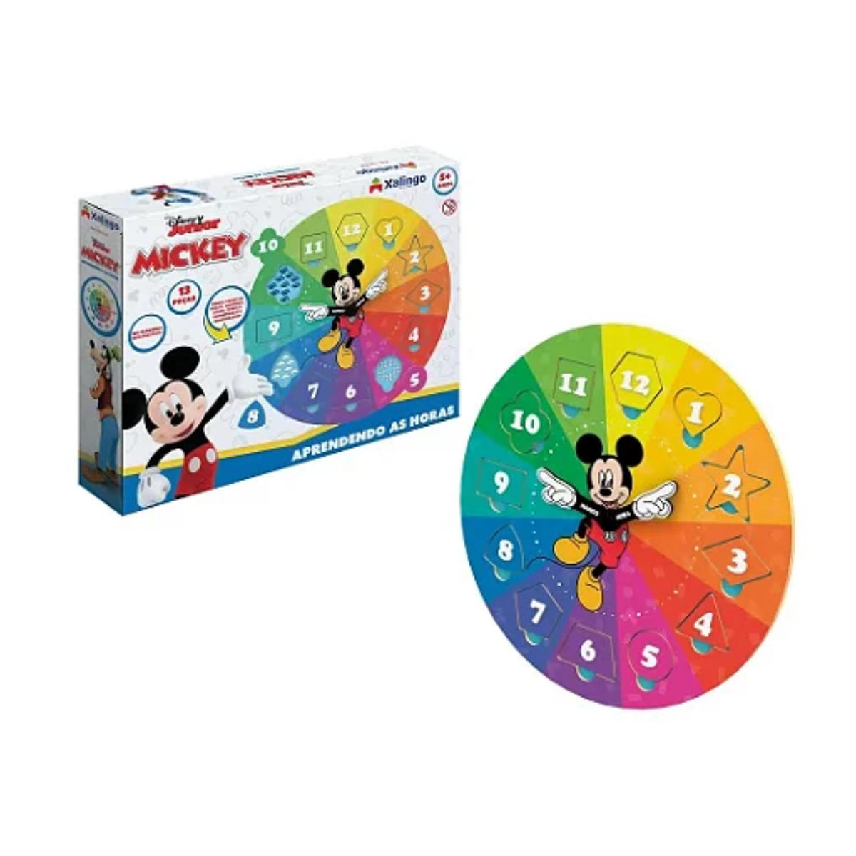 Torne a aprendizagem ainda mais divertida com o Relógio do Mickey da Xalingo! Esse quebra-cabeça educativo é perfeito para introduzir as crianças ao universo das horas, números, cores, formas geométricas e quantidades – tudo isso com a companhia do Mickey!