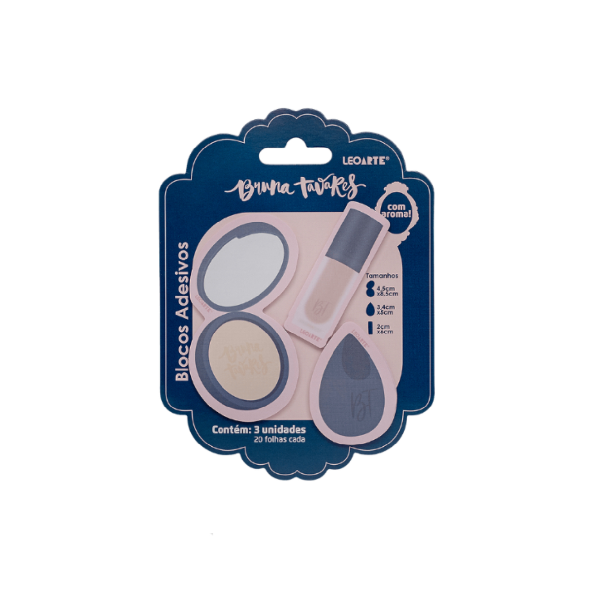 Perfeito para quem ama papelaria e maquiagem! O Bloco Adesivo Bruna Tavares vem com 3 modelos diferentes, cada um com 20 folhas, totalizando 60 folhas autocolantes. Em formato de itens de make, ele deixa as anotações ainda mais estilosas.