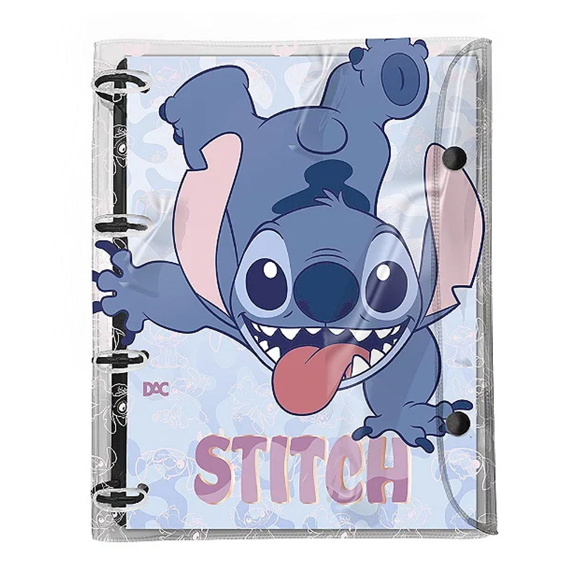 O Stitch chegou para deixar seus estudos mais organizados e cheios de personalidade! O Fichário Universitário Cristal da DAC é ideal para quem busca praticidade no dia a dia, com 10 divisórias internas e argolas articuladas que facilitam inserir e retirar folhas.